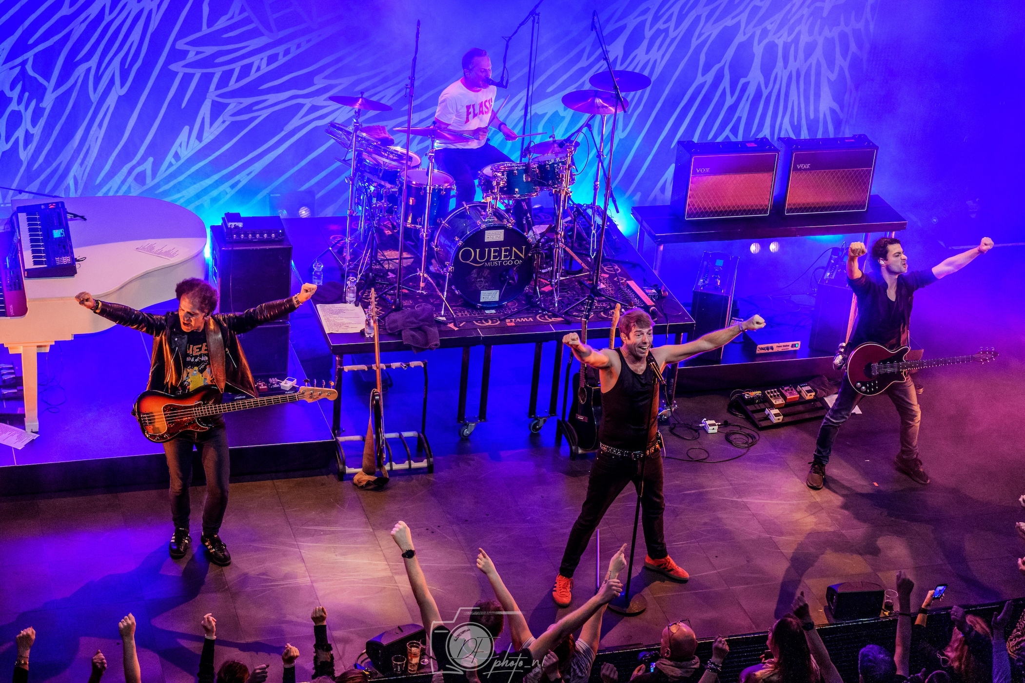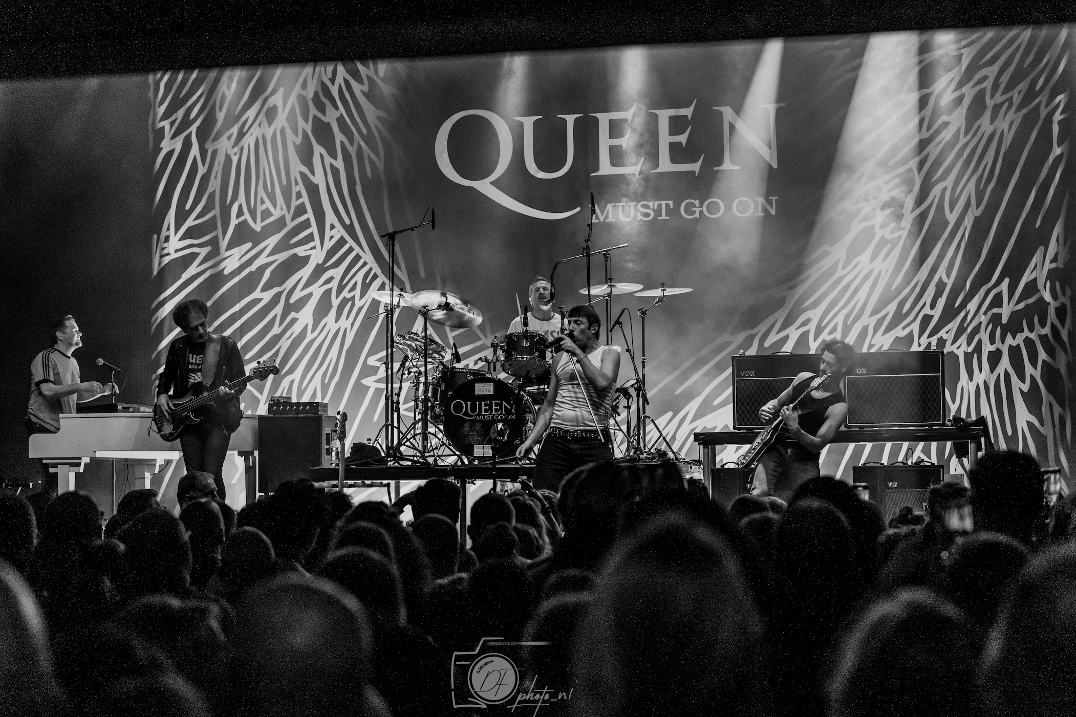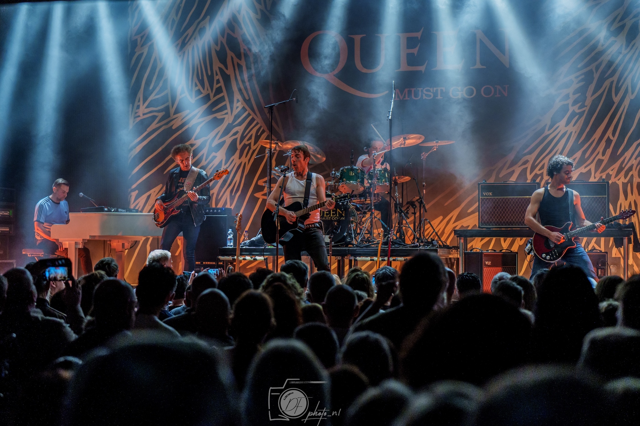 Queen Must Go On is een Nederlandse tributeband die een eerbetoon brengt aan een van de grootste rocklegendes aller tijden: Queen. Met een diepgaande passie voor het werk van deze iconische Britse band weet Queen Must Go On het tijdloze repertoire van Queen op indrukwekkende wijze te vertolken. Van de onmiskenbare hits als "Bohemian Rhapsody" en "We Will Rock You" tot minder vaak gespeelde pareltjes, brengt de band een muzikale ervaring die recht doet aan de originaliteit, kracht en emotie van Queen. Wat Queen Must Go On onderscheidt, is niet alleen het technische vakmanschap, maar ook de aandacht voor detail en de ambitie om de grandeur en theatraliteit van Queen's live-optredens te evenaren. De bandleden beschikken over sterke vocale kwaliteiten, waarbij de frontman erin slaagt de bijzondere stem van Freddie Mercury met respect en overtuiging te benaderen, zonder in imitatie te vervallen. Instrumentaal wordt het geheel gedragen door een solide ritmesectie en virtuoze gitaarpartijen, die de karakteristieke sound van Brian May eer aandoen. Het geluid is rijk, vol en dynamisch, en slaagt erin om zowel de bombastische als de ingetogen kanten van Queen te vangen. Queen Must Go On heeft zich met hun zorgvuldig opgebouwde shows gepositioneerd als een van de toonaangevende Queen-tributebands in Nederland. Door hun inzet en professionaliteit weten zij het publiek keer op keer te imponeren en mee te nemen op een muzikale reis langs het legendarische oeuvre van Queen. Met hun optredens brengen ze een feest van nostalgie en muzikale perfectie, waarbij ze niet alleen fans van Queen aanspreken, maar ook nieuwe generaties weten te fascineren. Daarmee bevestigt Queen Must Go On hun rol als een eerbiedwaardige bewaarder van het muzikale erfgoed van een van de meest invloedrijke rockbands ooit.